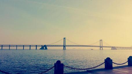 Keywords: dalian beach sunset city china sea bay bridge twilight