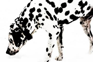 Keywords: dalmatian dog snow bland and white animal black white pet winter day love paws fur outdoor nature