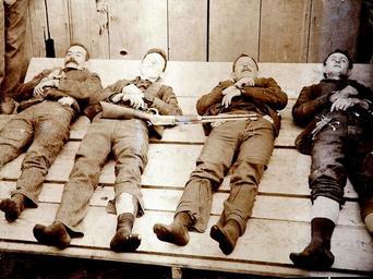 | Keywords: Dalton Gang memento mori 1892.jpg Memento Mori of the Dalton Gang Left to right Bill Power; Bob Dalton; Grat Dalton Dick Broadwell Cramers Art Rooms of Cherryvale Kansas 1892-10 not listed first published in 1892 File Daltongang jpg PD-old Coffeyville Kansas 1892 photographs People of the Wild West History of Kansas |