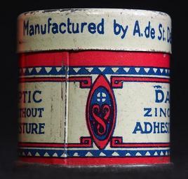 | Keywords: Dalzo zinc oxide adhesive plaster tin, laboratoires BE Phillips Nossegem, foto4.JPG Very old product that is not produced and not sold any more Note that some tins may look the same but when looked for carefully there are some slight differences Photographed at a collector of Droste memorabilia and old tin cans For more info see http //www tincollectors nl/ tincollectors nl or email info tincollectors nl own 2014-02-08 13 32 10 Alf van Beem CC-zero Trademarked First aid tins | ||||