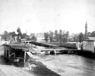 Keywords: Damascus-80.jpg نهر بردى من طريق بيروت ومئذنة جامع دنكز ميسون بونفيلس 1870 PD-old Pre 1900 Damascus