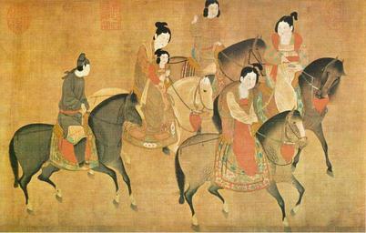 | Keywords: Dame Guoguo partant faire une promenade à cheval, copie par Li Gonglin.jpg Artwork Li Gonglin d'après fr Dame Guoguo partant faire une promenade à cheval copie du XIIe siècle par le peintre chinois Li Longmian d'après Zhang Xuan peintre chinois du VIIIe siècle Section d'un rouleau horizontal “ Encre et couleurs sur soie “ Hauteur 33 5 cm Collections du Musée du Palais “ Taichung Formose La peinture chinoise - Les trésors de l'Asie auteur James Cahill éditeur éditions Albert Skira Traducteur Yves Rivière Langue français Année 1960 pages 212 passage 20<br> object history exhibition history credit line accession number century 12 Institution National Palace Museum PD-old-100 PD-old-100-1923 Zhang Xuan Paintings in the National Palace Museum Paintings of the Song Dynasty Scrolls of China Chinese literati paintings Chinese silk Ancient Chinese art Ink and wash paintings in China Painting in art Art of China Art in China Artists from China Collections of art in China Art from Asia 11th-century paintings 12th-century paintings |
