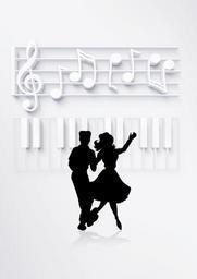 Keywords: dance dancing couple pair music clef treble clef texture background arrangement staves melody notenblatt keyboard keys dancers rock n roll rock good mood party black