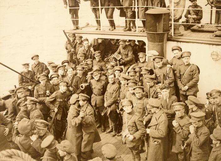 Keywords: irish civil war irishcivilwar ship four courts fourcourts dancing eating smoking uniforms guns rifles apple accordion free state soldiers freestatesoldiers troops pro treaty protreaty w.d. hogan wdhogan hogan collection hogancollection 1922 1920s twenties bandolier 18-pounder 18pounder field gun fieldgun date established dateestablished limerick by beachcomber limerickbybeachcomber monday 7th august 20th century 20thcentury national library of ireland nationallibraryofireland people monochrome A lighter moment during the Irish Civil War captured by photographer W.D. Hogan, as Free State soldiers on board the S.S. Arvonia dance with each other to melodeon music... Date: Monday, 7 August 1922 (99% certain) NLI Ref.: HOG45 A lighter moment during the Irish Civil War captured by photographer W.D. Hogan, as Free State soldiers on board the S.S. Arvonia dance with each other to melodeon music... Date: Monday, 7 August 1922 (99% certain) NLI Ref.: HOG45 |