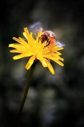 Keywords: dandelion bee yellow flower animal insect honey bee close blossom bloom pointed flower nectar plant sprinkle insect macro garden pollination macro nature summer flight insect creature petals close up wing wing beat flower garden