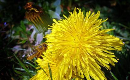 Keywords: dandelion flower yellow nature spring green roadside macro pointed flower meadow structure leaves petals summer yellow flower plant garden close bee honey honey bee macro photography late summer approach pollination beautiful tender