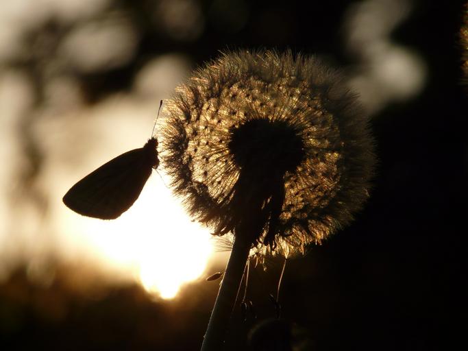 Keywords: dandelion seeds flower meadow spring stalk back light butterfly green veined white white ling
