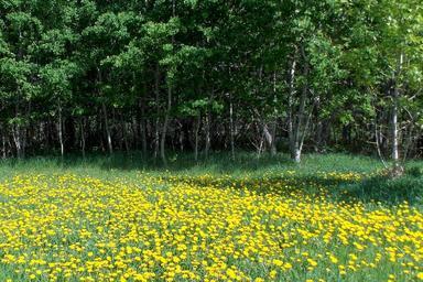 Keywords: dandelions yellow trees nature grass outdoor green meadow rural day summer