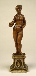 | Keywords: Daniel Mauch - Venus Holding an Apple - Walters 6119 - View A.jpg This lovely young woman's fanciful headdress marks her as Venus and not Eve She was once part of a group of statuettes that recreated the classical myth of the Judgment of Paris In a contest conceived by the goddess of Discord the Trojan prince Paris was asked to judge who among Venus goddess of love Juno wife of Jupiter king of the Olympian gods and Minerva celebrated for her wisdom was the most beautiful; a golden apple was presented to the winner Venus here holds the apple that memorialized her triumph Although the subject is from classical antiquity the rounded proportions of the figure are thoroughly modern Netherlandish between 1530 1540 Renaissance boxwood cm 21 accession number 61 19 27341 Henry Walters Baltimore date and mode of acquisition unknown Walters Art Museum Henry Walters Acquired by Henry Walters World of Wonder The Walters Art Gallery Baltimore 1971-1972 A Renaissance Puzzle Heemskerck's Abduction of Helen The Walters Art Gallery Baltimore 1993 place of origin Germany Walters Art Museum license Renaissance sculpture in the Walters Art Museum Daniel Mauch Media contributed by the Walters Art Museum needs category review Media contributed by the Walters Art Museum needs artist update Aphrodite in post-antique sculpture Statues of Aphrodite Sculptures of nude standing women |