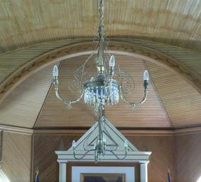 | Keywords: Dannevirke church interior chandelier.JPG Elba in w Howard County Nebraska The church was built in Gothic Revival style in 1906 With the community hall on the southwest corner of the intersection it constitutes the Dannevirke Danish Lutheran Church and Community Hall which property is listed in the National Register of Historic Places The camera is facing eastward; the white triangular object in the lower portion of the photo is the top of the altar own Ammodramus 2010-05-29 Pictures by Ammodramus Taken with Panasonic Lumix DMC-FZ20 Dannevirke Danish Lutheran Church Electric chandeliers in the United States |