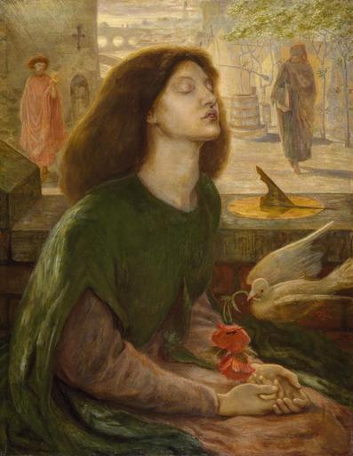 Keywords: Dante Gabriel Rossetti and Ford Madox Brown - Beata Beatrix.jpg Artwork Creator Dante Gabriel Rossetti Creator Ford Madox Brown en The a young woman is shown seated and half length at the moment of suspension between life and death A bird drops it's red poppy between her open hands In the background Dante is shown looking across to the figure of Love The frame has four incised roundels one on each side 1877 oil on canvas cm 86 4 68 2 Institution Birmingham Museum and Art Gallery Fine Art Paintings and Sculpture place of discovery object history exhibition history credit line Purchased 1891 en One of several versions of this subject this painting was unfinished at the time of Rossetti's death and the background was completed by Ford Madox Brown The painting is a personal expression of Rossetti's love for his deceased wife Elizabeth Siddal seen through the writings of Dante the subject is taken from 'La Vita Nuova' In this version the poppies are red perhaps an explicit reference to opium-derived laudanum accession number 1891P25 place of creation http //www bmagic org uk/objects/1891P25 Birmingham Museum and Art Gallery http //www bmagprints org uk/image/331222/dante-gabriel-rossetti-ford-madox-brown-beata-beatrix Birmingham Museum and Art Gallery Prints <br /> http //www preraphaelites org/the-collection/1891P25/beata-beatrix/ Pre-Raphaelite Online Resource Custom license marker 2015 11 09 PD-old-auto-1923 1893 Uploaded with UploadWizard Beata Beatrix Ford Madox Brown Paintings by two artists 1877 oil on canvas paintings in the United Kingdom Paintings in the Birmingham Museum and Art Gallery |