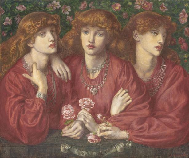 Keywords: Dante Gabriel Rossetti - Rosa Triplex (1874).jpg Artwork Creator Dante Gabriel Rossetti 1874 Technique pencil watercolour bodycolour gum arabic paper cm 77 5 88 3 Institution Private collection place of discovery object history Purchased from the artist by Frederick W Craven for £196 or £236 W M Rossetti gives both figures <br /> C W Mills by 1883 <br /> W Graham Robertson by 1897; Christie ™s London 22 July 1949 lot 125 £220 to Leger Galleries where purchased by Virginia Surtees in February 1951 for £285 exhibition history London Royal Academy Works by the Old Masters and by Deceased Masters of the British School including a Special Selection from the Works of John Linnell and Dante Gabriel Rossetti 1883 no 352 lent by C W Mills <br /> London Guildhall 1892 no 159 erroneously described as on canvas <br /> London Grafton Gallery 1894 no 130 <br /> London New Gallery Pictures Ancient and Modern by Artists of the British and Continental Schools including a Special Selection from the Works of Dante Gabriel Rossetti 1897-8 no 43 lent by W Graham Robertson <br /> Rome Dante Gabriele Rossetti e i Preraffaelliti 1958 lent by Virginia Surtees <br /> London Royal Academy Dante Gabriel Rossetti Painter and Poet 1973 no 339 lent anonymously credit line D G Rossetti 1874 signature/date lower right ~ on a scroll ~ Model May Morris accession number place of creation 5807499 1545 17 17 June 2014 London King Street https //tools wmflabs org/zoomable-images/zoomify php path http //www christies com/lotfinderimages/d58074/d5807499 zoom 4 http //www rossettiarchive org/docs/s238 rap html Rossetti Archive Q27089332 Custom license marker 2015 12 26 PD-old-auto-1923 1882 Paintings of females by Dante Gabriel Rossetti Portraits by Dante Gabriel Rossetti Triple portraits Females with roses in art May Morris 1874 watercolor paintings 1870s paintings in private collections Images from Christie's |