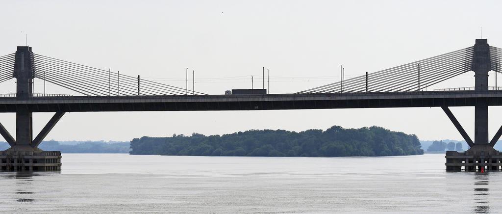 | Keywords: danube bridge new-europe calafat romania vidin bulgaria 1800 meters over water 3500 meters total length eu european union promotion island danube island suspension wires voltage underflow danube current river brussels money road railway combined truck tractor |