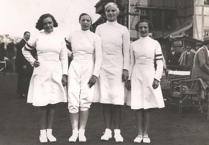 Keywords: Danÿ Margit & Elek Ilona & Bogen Erna & Elek Margit.jpg hu 1933-ban Európa bajnok magyar női tőrvívó csapat balról jobbra Danÿ Margit Elek Ilona Bogen Erna Elek Margit http //www bibl u-szeged hu/ha/sport/album/49a jpg author PD-old Ilona Elek Erna Bogen Margit Danÿ Margit Elek |