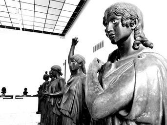 | Keywords: Danzatrici.JPG Museo Archeologico Nazionale di Napoli Statue muliebri in bronzo di epoca romana rinvenute ad Ercolano nella Villa dei Papiri Le cinque figure femminili più una sesta di dimensioni minori e in atteggiamento da orante benché trovate in punti diversi del giardino della villa probabilmente decoravano in origine il peristilio minore al centro del quale vi è una lunga piscina con sei nicchie al suo interno Le figure femminili sono state variamente interpretate dapprima come danzatrici poi come portatrici di acqua più recentemente come le Danaidi le sciagurate figlie di Danao condannate per i loro misfatti ad attingere acqua in eterno Oggi più correttamente si indicano semplicemente come peplophorai Autore della foto Roberto De Martino Own Dr Conati <gallery> File Napoli Museo Nazionale 0803 JPG File Danzatrici JPG Image Danzatrice JPG </gallery> Bronze peplophorai from the Villa of the Papyri Herculaneum 5604 5605 5619 5620 5621 |