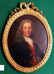 | Keywords: D'après Nicolas de Largillière, Portrait de Voltaire (château de Ferney).jpg after portrait of male depicted person LangSwitch François-Marie Arouet 1694 1778 known as Voltaire French Enlightenment writer and philosopher François-Marie Arouet 1694 1778 dit Voltaire écrivain et philosophe français du siècle des Lumières Ф ансуа- а и А уэ 1694 1778 известный под именем Вольте а ф анцузский писатель и философ эпохи П освещения century 19 oil canvas Institution Château de Voltaire object history exhibition history credit line LangSwitch This portrait is a copy of the picture conserved in the Musée national du Château de Versailles inv MV 8159 Ce portrait est une copie du tableau conservé au musée national du château de Versailles inv MV 8159 Данный по т ет является повто ением ка тины находящейся в ациональном музее Ве сальского дво ца инв MV 8159 accession number own Brücke-Osteuropa ; 2012-11-02 other versions <gallery> File Nicolas de Largillière François-Marie Arouet dit Voltaire vers 1724-1725 -002-transparent png MV 8159 </gallery> PD-old-100 DEFAULTSORT 1800-1899 Voltaire François-Marie Arouet dit Portraits of Voltaire after Nicolas de Largillière Château de Ferney-Voltaire Blue clothing in art male 18th-century oil oval portraits of men at bust length Golden painting frames Males facing right in art Portrait paintings with neutral background Powdered wigs in art Uploaded with UploadWizard |