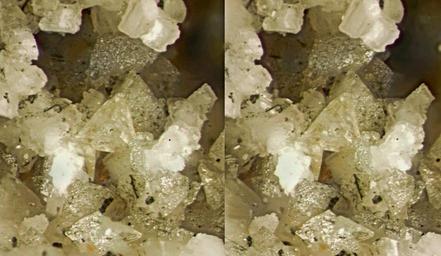 Keywords: Daqingshanite-(Ce)-283082.jpg en Locality Poudrette quarry Demix quarry; Uni-Mix quarry; Desourdy quarry; Carrière Mont Saint-Hilaire Mont Saint-Hilaire La Vallée-du-Richelieu RCM Montérégie Québec Canada FOV 1 3 x 1 5 mm Via Monteregian Minerals LH Stereo pair MOB coll The pale yellowish triangular xl in the center is daqingshanite It is actually a trigonal pyramid that looks like a shallow tetrahedron The xl is less than 0 4 mm on edge Daqingshanite is a very rare mineral According to Horvath Min Rec 1990 it was probably found only once at MSH I used stereo because the xls are very pale and on a very pale background Stereo overcomes the lack of contrast to some extent There are two other daqingshanite xls in the photo but they are even smaller and very hard to spot due to their size and orientation Again - stereo helps 2012-10-21 11 51 52 http //www mindat org/photo-283082 html Modris Baum other versions cc-zero Daqingshanite- Ce