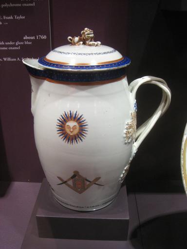 | Keywords: DAR pot - IMG 8688.JPG Flagon porcelain with polychrome enamel decorations of Masonic symbols; Chinese circa 1800 Pottery exhibited in the DAR Museum National Society Daughters of the American Revolution 1776 D Street NW Washington DC USA I took this photograph 2011-01-18 13 45 00 Daderot Public domain Pottery in the DAR Museum Chinese export porcelain Masonic artifacts |