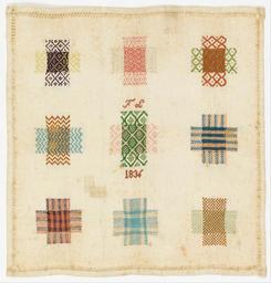 | Keywords: Darning sampler - Google Art Project (6814946).jpg 6938587 Unknown /collection/cooper-hewitt-national-design-museum/artwork/darning-sampler-unknown/6814946/ 176798 author /collection/cooper-hewitt-national-design-museum/ Cooper-Hewitt National Design Museum 3644669 http //www cooperhewitt org/ /collection/cooper-hewitt-national-design-museum/artwork/darning-sampler-unknown/6814946/ 1836 1836 Medium silk embroidery on cotton foundationTechnique embroidered in running and four sided cross stitches with overcasting over withdrawn element work on plain weave foundation 240 6814946 False 1836 1981-28-208 http //collection cooperhewitt org/view/objects/asitem/id/176798 Bequest of Gertrude M Oppenheimer Darning sampler 1830 1840 w235 x h240 cm 1836 False 0 95703125 Object darning-sampler-unknown Darning sampler d 235 H x W 24 1 x 23 5 cm 9 1/2 x 9 1/4 in F L Medium silk embroidery on cotton foundationTechnique embroidered in running and four sided cross stitches with overcasting over withdrawn element work on plain weave foundation special url_id ZwFfWB5pBc7bXA PD-old-100-1923 Google Art Project works by unknown artist Textiles in the Cooper “Hewitt Smithsonian Design Museum 1830s samplers Google Art Project works in Cooper-Hewitt Smithsonian Design Museum 1836 works |