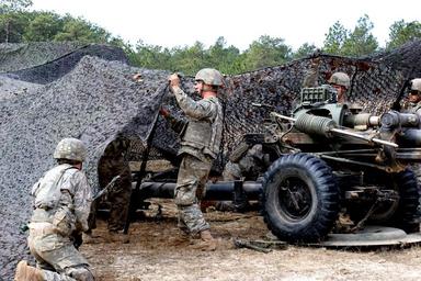 | Keywords: 82nd airborne division 82ndairbornedivision 82nd airborne divarty 82ndairbornedivarty divarty dart 319th afar 319thafar gun devils gundevils howitzer hipshoot m119a3 redleg artillery airborne 3-319th afar 3319thafar outdoor Airborne Artillerymen assigned to the 82nd Airborne Division Artillery quickly set up camouflage netting over their M119A3 light howitzer during a Division Artillery Readiness Test on Fort Bragg N.C., March 2, 2016. The DART tests the battery in support of Global Response Battalion 1 on the their ability to conduct standard and non-standard fire missions such as the out of traverse, and emergency fire missions both day at night under stressful situations to ensure they can support any mission for GRB-1 within 18 hours of notification. (82nd ABN DIVARTY PAO, Capt. Joe Bush/ Released) Airborne Artillerymen assigned to the 82nd Airborne Division Artillery quickly set up camouflage netting over their M119A3 light howitzer during a Division Artillery Readiness Test on Fort Bragg N.C., March 2, 2016. The DART tests the battery in support of Global Response Battalion 1 on the their ability to conduct standard and non-standard fire missions such as the out of traverse, and emergency fire missions both day at night under stressful situations to ensure they can support any mission for GRB-1 within 18 hours of notification. (82nd ABN DIVARTY PAO, Capt. Joe Bush/ Released) |