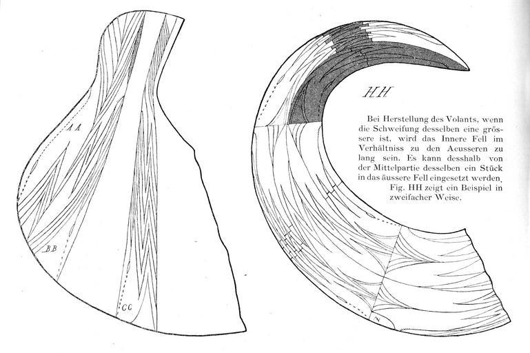 | Keywords: Das Kürschner-Handwerk, 3. Teil, S. 26, Grosser Kragen mit Volant (2).jpg Grosser Kragen mit Volant Inhalt 180 Meter Verbrauch ungefähr 39 Felle mittlerer Grösse Obwohl dieser Artikel im Allgemeinen von der Mode z Z vernachlässigt ist scheint uns doch von Nutzen zu sein über die Anfertigung desselben einige Erklärungen zu geben Es ist von grossem Vorteil vor der Berechnung und dem Assortiment das betreffende Material in weisser Leinwand auszuführen und auf dieselbe die Hauptrichtungen der Felle und Krotzen zu zeichnen um diese auf dem eigentlichen Muster klar und sicher bestimmen zu können Bei dem Assortiment wird zunächst die notwendige Zahl der Felle mit dem gewählten Muster verglichen Die Felle werden dann gepaart Das schönste Paar für den Innenkragen dann für Jabot für Vorderteil und Rücken bestimmt Die flachsten Felle nehmen wir zum Volant da sie durch das Querstehen an Ansehen gewinnen Bei dem Sortiment ist darauf zu achten dass die mit dem Körper in Berührung kommenden Felle gleicher Farbe seien Ist das Sortiment vollständig festgestellt werden die Felle aufgeschnitten leicht angefeuchtet und sorgfältig gestreckt Dann werden Krotzen Kehlen Seiten Wirbel und Weichen sowie die dunklen Streifen der Hinterklauen mit Tinte angezeichnet Hierauf werden die Felle von der schlechten Seite und dem Wilden des Pumpfes gesäubert Fortsetzung siehe im vorhergehenden Bildtext siehe unten Paul Larisch und Josef Schmid Das Kürschner-Handwerk Eine gewerbliche Monographie III Teil 1 Jahrgang Nr 2 1902 S 26 25-27 1902 Larisch/Schmid PD-old <gallery> Das Kürschner-Handwerk 3 Teil S 26 Grosser Kragen mit Volant 1 jpg </gallery> Das Kürschner-Handwerk Paul Larisch und Joseph Schmid III S 26 Sable fur-skin manufacturing Letting out fur Fur collar manufacturing |
