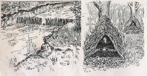 | Keywords: Das Kürschner-Handwerk, 3. Teil, S. 30, Fallen für Nerze und Fischottern.jpg Vorrichtungen mit Fallen wie sie hauptsächlich für Nerze und Fischottern angelegt werden Links ein mit Pfählen abgesteckter Bach Das + zeigt die Stelle wo die Fallen liegen Rechts aus Zweigen gebildete Hütten in welchen die Fallen liegen und die 2 Eingangslöcher haben Paul Larisch und Josef Schmid Das Kürschner-Handwerk Eine gewerbliche Monographie II Auflage III Teil 1910 S 30 1910 Larisch/Schmid PD-old Das Kürschner-Handwerk Paul Larisch und Joseph Schmid II Auflage III S 30 Lutra lutra Marten traps |