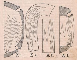 | Keywords: Das Kürschner-Handwerk, II. Auflage 3. Teil, S. 57. Verarbeitung eines Biberfells zu einem Schalkragen.jpg Verarbeitung eines Biberfells zu einem Schalkragen Fig K 1 zeigt ein grosses Fell zu Chalkragen bestimmt mit den zumachenden Auslassschnitten K 2 das Resultat Fig A r ist ein Fell zu Aufschlägen behandelt A 2 bringt das Resultat zur Auschauung Auf dieselbe Weise werden auch die Felle behandelt die zu einem Pelzfutter bestimmt sind und die ins Viereck gestellt werden sollen Bei Anfertigung von Biberfuttern ist wie bei allen Biberarbeiten zu bemerken dass Biber stets gegen das Haar also gestürzt Kopf unten Pumpf oben zu verarbeiten ist Paul Larisch und Josef Schmid Das Kürschner-Handwerk Eine gewerbliche Monographie II Auflage Teil III 1910 S 57 1910 Larisch/Schmid PD-old Das Kürschner-Handwerk Paul Larisch und Joseph Schmid II Auflage S 57 Beaver fur-skin manufacturing Fur collar manufacturing Letting out fur |