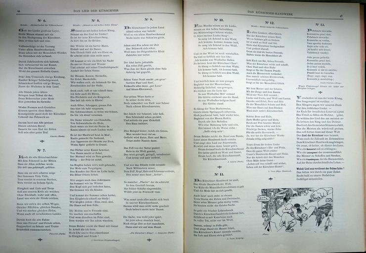 | Keywords: Das Kürschner-Handwerk, I. Auflage 3. Teil, S. 44-45. Der Sängerkrieg im Kürschnerhandwerk (2).jpg  Der Sängerkrieg im Kürschnerhandwerk Ein Wettbewerb um das beste Kürschner-Lied 1902 2 von 4 Seiten Paul Larisch und Josef Schmid Das Kürschner-Handwerk Eine gewerbliche Monographie I Auflage Teil 3 1902 S 44-45 1902 Göggel Paris Pellifex Pseudonym für Paul Larisch Paris J Gottwald Constantinopel žDes Kürschners Klage - Anonyme Paris J Aiphos Paris A Thiel Leipzig A Vock Riga Josefa Pospisila Prag PD-old PD-text <gallery> Das Kürschner-Handwerk I Auflage 3 Teil S 42-43 Der Sängerkrieg im Kürschnerhandwerk 1 jpg 1 Teil Heute Kürschnerfest - Today Furrier's festival jpg </gallery> Das Kürschner-Handwerk Paul Larisch und Joseph Schmid I Auflage S 44 Furriers in Paris Furriers in Istanbul Gottwald J Furriers in Leipzig Thiel A Furriers in Riga Vock A Furriers in Prague Pospisila Josefa |