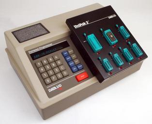 | Keywords: Data IO 29B UniPak 2.jpg en Data I/O 29B Universal Programmer circa 1984 The 29B could hold several different plugin modules and is shown with UniPak 2 PROM module The UniPak 2 could program virtually all Programmable Read Only Memory devices fuse link and erasable made at the time The 29B used a Motorola MC6802 microprocessor and could connect to a terminal or computer via a RS323 serial port <br>The 29B was introduced in 1984 Its predecessor the System 19 was introduced in September 1978 The original UniPak was introduced in 1980 and UniPak 2 in January 1983 Over 10 000 of the systems were sold Data I/O annual reports give the sales of the Model 29 and UniPak as 18 million in 1983 and 28 million in 1985 This system cost between 5000 and 7000 depending on options 1988 price list <br>Photo by Michael Holley 2008 with a Nikon D60 DSLR under tungsten lighting Own Swtpc6800 en User Swtpc6800 Michael Holley 2008-12-02 <gallery>File Data_IO_29B_LogicPak jpg 29B with LogicPak</gallery> Device programmers Photographs by User Swtpc6800 Zero Insertion Force Vacuum fluorescent displays Numeric keypads Data IO Corporation |