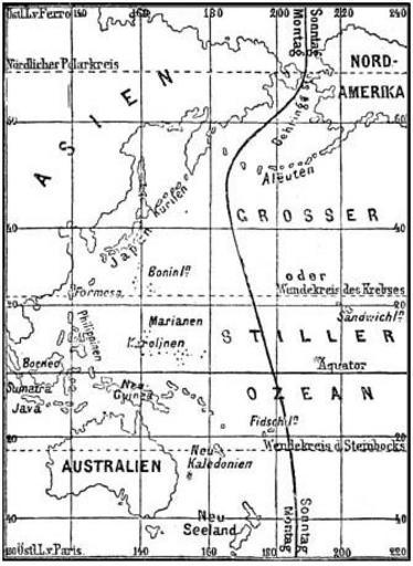 Keywords: Datumsgrenze 1891 Meyers b18 s1028.jpg 18 1027 1028 1028 a map of the International Date Line in 1891 from page eine Karte der Datumsgrenze 1891 aus Seite Volume/Band 18 Supplement replaced the prior map File Datumsgrenze MK1888 png - old map alte Datumsgrenze-Karte 2010-11-09 Meyers b18 s1028 jpg Maps from Meyers Konversationslexikon 4th edition ~ Time zone maps of the Pacific Maps in German Old maps of oceans Images from Meyers Konversationslexikon 4th edition - text figures Meyers b18 s1028