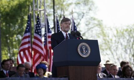 | Keywords: David B. Roosevelt, grandson of President Roosevelt, speaks at the 1997 dedication of the Franklin Delano Roosevelt Memorial in Washington, D.C LCCN2011634212.tif 1 transparency color ; 4 x 5 in or smaller Notes Title date and keywords provided by the photographer ; Digital image produced by Carol M Highsmith to represent her original film transparency; some details may differ between the film and the digital images ; Forms part of the Selects Series in the Carol M Highsmith Archive ; Gift and purchase; Carol M Highsmith; 2011; DLC/PP-2011 124 ; Credit line Photographs in the Carol M Highsmith Archive Library of Congress Prints and Photographs Division 1997 Creator Carol M Highsmith Library of Congress Catalog http //lccn loc gov/2011634212 Image download https //cdn loc gov/master/pnp/highsm/16000/16019a tif Original url http //hdl loc gov/loc pnp/highsm 16019 No known restrictions on publication LOC-image highsm 16019 PD-Highsmith Images uploaded by Fæ Photographs by Carol M Highsmith |