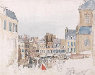 | Keywords: David Cox - A French Market Place - Google Art Project.jpg Inscribed in artist's hand in graphite on roof upper right slate ; on building upper left not quite high as Inscription _Signed_and_Dated not signed Not on View Watercolor over graphite on medium smooth white wove paper French market building church barrow cityscape special url_id 3gEvHAF9GECXfQ PD-old-100-1923 1859 Google Art Project works by David Cox Artworks of David Cox Paintings in the Yale Center for British Art | ||||