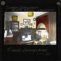 | Keywords: David Livingstone's Birth Room, Blantyre, Scotland, ca.1875-ca.1940 (imp-cswc-GB-237-CSWC47-LS16-004).jpg en <br> David Livingstone's Birth Room Blantyre Scotland ca 1875-ca 1940 Photograph of the birth place of the Scottish missionary David Livingstone 1813-1873 Livingstone was born in this room in Shuttle Row in Blantyre The photograph shows a single room with a box bed in the corner a fireplace a number of chairs and a cupboard There are paintings and a clock n the wall and a number of ornaments are visible ; This belongs to a series of Church of Scotland Foreign Missions Committee lantern slides relating to David Livingstone 1813-1873 the Scottish missionary who was best known as an explorer of Africa and anti-slavery campaigner Livingstone was born in Blantyre Scotland and after working in the local cotton mill from the age of 10 he went on to study medicine and theology in Glasgow in 1836 Having decided to become a missionary he was posted to southern Africa in 1841 In 1845 he married Mary Moffat During his life Livingstone carried out exploration of southern eastern and central Africa he discovered and named the Victoria Falls and it was his meeting with H M Stanley during a search for the source of the Nile that gave rise to the popular quotation Dr Livingstone I presume David Livingstone died in Africa on 1 May 1873 and his body was buried in Westminster Abbey Photographer Unknown Subject personal name Livingstone David 1813-1873 Filename imp-cswc-GB-237-CSWC47-LS16-004 tif Coverage date circa 1875/1940 Part of collection International Mission Photography Archive ca 1860-ca 1960 Type images Part of subcollection Photographs from the Centre for the Study of World Christianity University of Edinburgh U K ca 1900-ca 1940s Repository name Centre for the Study of World Christianity Archival file impaunpub_Volume7/1837 url Repository address The University of Edinburgh School of Divinity New College Mound Place Edinburgh EH1 2LX United Kingdom Geographic subject country Scotland Format aacr2 1 lantern slide 8 x 8 cm Geographic subject continent Europe Rights Contact the repository for details Part of series David Livingstone LS16 Repository email divinity-CSWC ed ac uk Subject lcsh Keyword Dwellings Date created circa 1875/1940 Publisher of the digital version University of Southern California Libraries Subject aat genre interior views Format aat lantern slides Legacy record ID impa-m69417 Access conditions http //www ed ac uk/schools-departments/divinity/research/centres/world-christianity/collections-resources File GB 237 CSWC47/LS16/4 circa 1875 /1940 author http //digitallibrary usc edu/cdm/ref/collection/p15799coll123/id/64953 PD-old-70-1923 Magic lantern images Images from USC Digital Library uploaded by Fæ International Mission Photography Archive ca 1860-ca 1960 David Livingstone IMPA |