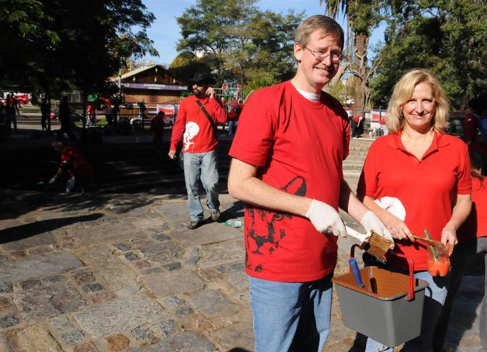 | Keywords: david nelson davidnelson sabre holdings sabreholdings us embassy montevideo usembassymontevideo visdip zoo outdoor El Embajador de Estados Unidos, David Nelson junto a Jean Shaw, Vice Presidenta de Sabre Holdings, prontos para dar una mano de pintura. [U.S. Embassy photo by Pablo Castro] El Embajador de Estados Unidos, David Nelson junto a Jean Shaw, Vice Presidenta de Sabre Holdings, prontos para dar una mano de pintura. [U.S. Embassy photo by Pablo Castro] | ||||