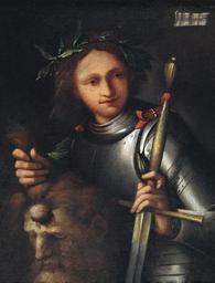 | Keywords: David und Goliath (Venedig 16 Jh).jpg David und Goliath oben rechts beschriftet In David se ritrasse il gran Giorgione per servir o seguir il suo ben in Castelfranco emulo di valor non fece manco se pingendo l ™insigne Pordenone Öl auf Leinwand 72 5 x 57 cm Venezianische Schule des 16 Jahrhunderts century 16 Oil on canvas cm 72 5 57 unknown http //www dorotheum com Dorotheum other versions PD-old-100 Images from Dorotheum 16th-century paintings location missing Paintings of David with Goliath's head 16th-century oil paintings of men at half length 16th-century paintings of David Art from Venice People wearing armour Paintings of men with swords |