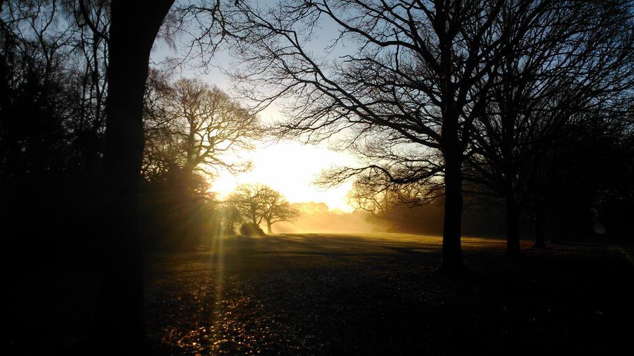 Keywords: dawn autumn sunrise landscape mist light trees silhouette southampton common woods
