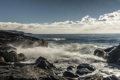 Keywords: dawn beach guilche nerja malaga costa del sol spain sea sky landscape sun clouds blue rocks stillness peaceful horizon holiday