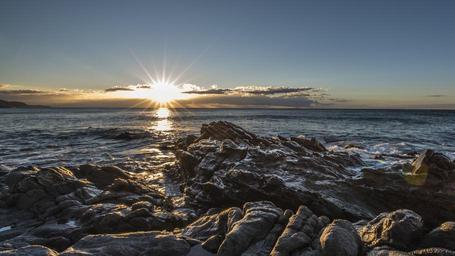 Keywords: dawn beach guilche nerja malaga costa del sol spain sea sky landscape sun clouds blue rocks stillness peaceful horizon holiday