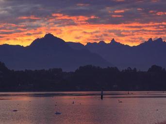 Keywords: dawn cloud orange lake switzerland lucerne morning glow natural light water surface landscape evening mountain water forest orange sky
