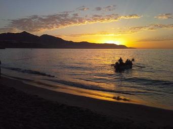 Keywords: dawn good morning water sky sea smartphone clouds sun boat boats phone