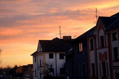 Keywords: dawn sky houses auto light beauty blue pink orange day white sun