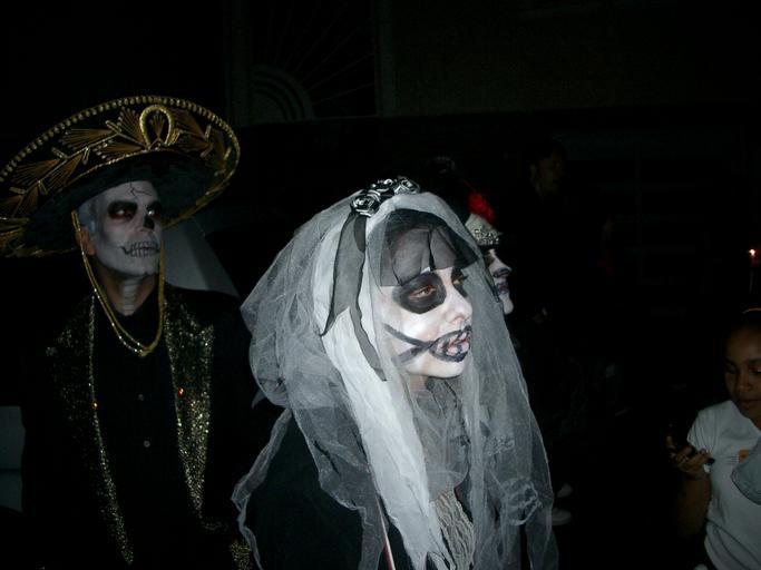 Keywords: Day of the Dead (Dia de los Muertos) procession in San Francisco, 2006 5.JPG Day of the Dead or in Spanish Dia de los Muertos procession and altars in the Mission District San Francisco California It is annually celebrated in San Franciso since 1988 Many participants come in costumes where dark or black and white colors are prevalent with faces painted to emulate skulls or with skull masks The procession goes through several streets in the Mission District ending at the Gardfield park where altars are set up The organizers http //www dayofthedeadsf org/ explain the tradition in the following way Dia de los Muertos is a traditional Meso-American holiday dedicated to the ancestors; it honors both death and the cycle of life In Mexico neighbors gather in local cemeteries to share food music and fun with their extended community both living and departed The celebration acknowledges that we still have a relationship with our ancestors and loved ones that have passed away In San Francisco Day of the Dead has been celebrated in the Mission district since the early 70s with art music performances and a walking procession which help us contemplate our existence and mortality -- a moment to remember deceased friends and family and our connections beyond our immediate concerns For the 2013 procession the organizers described the event as follows Over 15 000 people will gather in the Mission to participate in the 26th Annual Dia de los Muertos or Day of the Dead Procession Altars Through art music and ritual this event honors our ancestors and celebrates the vitality and richness of today's community While the ceremony remains true to its Latino roots the San Francisco procession actively encourages participation by people of all origins Bring candles photos food or something that reminds you of a person that has passed away The altars are community art installations that are intended to change as each person adds something to the hearth 2006-11-02 own Al83tito cc-zero Uploaded with UploadWizard Day of the Dead in San Francisco 2006 in San Francisco