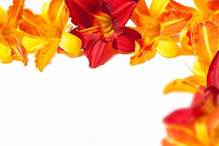 Keywords: daylily flowers summer stationery background greeting card business card leaf tender orange red yellow