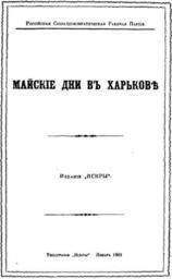 Keywords: Days of May in Kharkov.jpg en Cover of boook Days of May in Kharkov ru Обложка б ошю ы айские дни в Ха ькове 1901 г 1900 http //lib rus ec/i/66/211366/10 jpg author PD-old Uploaded with UploadWizard Book covers