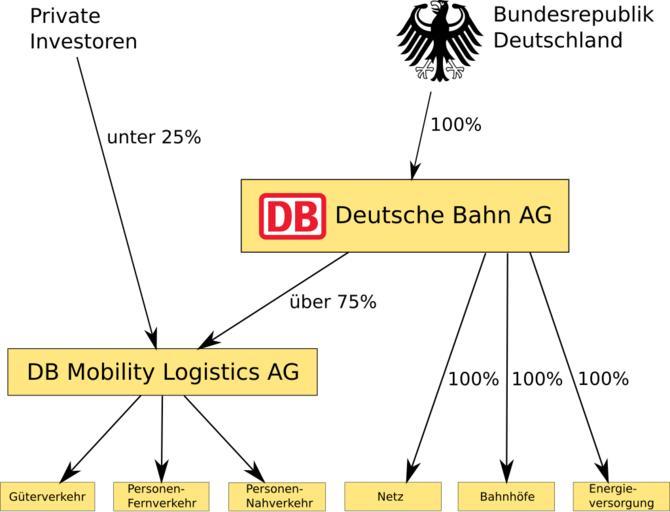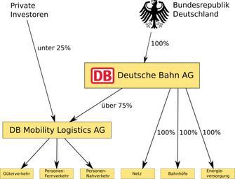 Keywords: DBAG Teilprivatisierung Holdingmodell.svg Besitzverhältnisse bei einer möglichen Teilprivatisierung der Deutschen Bahn AG beim Holding-Modell own 2008-03-06 MCMC Autor stellt das Diagramm allgemeinfrei Politics of Germany Deutsche Bahn