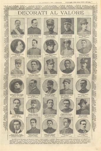 | Keywords: DC-1916-28-7-decorati.jpg  it Decorati al valore - caduti italiani della Prima Guerra Mondiale La Domenica del Corriere 1916 Anno XVIII n 28 pag 7 author 1916 PD-1923 Anonymous-EU Italy military personnel killed in World War I People of Italy in 1916 1916 La Domenica del Corriere La Domenica del Corriere caduti in guerra |