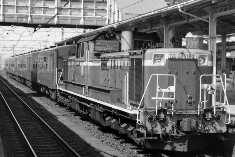 | Keywords: DD51 1182 at Niitsu 198905.JPG en DD51 1182 diesel engine hauling 50 series train at Niitsu Station ja 新津駅に 車するDD51 1182牽引の普 郡山行き 1989-05 own Hahifuheho other versions cc-zero Niitsu Station JNR DD51 JNR 50 series passenger cars Number 1182 on vehicles Black and white photographs of Japan in the 1980s Black and white photographs of trains in Japan 1989 in rail transport in Japan May 1989 photographs | ||||