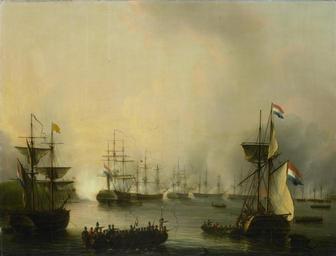 | Keywords: De beschieting van Palembang, Sumatra, 24 juni 1821 Rijksmuseum SK-A-1134.jpeg accession number SK-A-1134 Martinus Schouman credit line nl De beschieting van Palembang op Sumatra op 24 juni 1821 door de Nederlandse vloot De Nederlandse oorlogsschepen liggen voor de kust van Sumatra tussen de schepen varen enkele sloepen drager Height cm 70 5 drager Width cm 93 exhibition history Institution Rijksmuseum Technique oil canvas object history Acquisition 1885-05-01 object type Potential derivatives exist check http //commons wikimedia org/w/index php search Rijksmuseum+SK-A-1134 this search PD-US PD-old Data and photography rights All data and all images made available through the API are either in the public domain or are subject to a CC0 license https //www rijksmuseum nl/en/api/terms-and-conditions-of-use cc-zero place of creation http //www rijksmuseum nl/collectie/SK-A-1134 De beschieting van Palembang Sumatra 24 juni 1821 Q17323810 Uploaded with GWToolset De beschieting van Palembang Sumatra 24 juni 1821 Rijksmuseum SK-A-1134 http //www rijksmuseum nl/media/assets/SK-A-1134 Images uploaded by Fæ Images from the Rijksmuseum Paintings by Martinus Schouman in the Rijksmuseum Amsterdam Martinus Schouman |