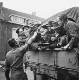 | Keywords: tweede wereldoorlog tweedewereldoorlog evacuaties roermond evacuation liberation american hat man men truck troops wwii holland netherlands americans army world war two civillians chapéu smoking roken happy laughing legertruck blackandwhite monochrome black and white Beschrijving: De bevolking van Roermond keert naar huis terug op Amerikaanse legertrucks. Datum: 1945-03-00 Plaats: Roermond Vervaardiger: Fotograaf onbekend Formaat: negatief 6x6 Bestanddeelnummer: 2.24.01.15_900-2277 Fotocollectie: Anefo Auteursrechten: Nationaal Archief Voor meer informatie over het Nationaal Archief: www.nationaalarchief.nl Voor meer foto's uit deze en andere collecties, bezoek onze Beeldbank: beeldbank.nationaalarchief.nl/ U kunt ons helpen onze kennis van de fotocollecties te verrijken door tags en commentaren toe te voegen. Herkent u mensen of locaties of heeft u een bijzonder verhaal te vertellen bij één van de foto’s, laat dan een reactie achter (als u ingelogd bent bij Flickr) of stuur een mailtje naar: flickrthecommons@nationaalarchief.nl! Beschrijving: De bevolking van Roermond keert naar huis terug op Amerikaanse legertrucks. Datum: 1945-03-00 Plaats: Roermond Vervaardiger: Fotograaf onbekend Formaat: negatief 6x6 Bestanddeelnummer: 2.24.01.15_900-2277 Fotocollectie: Anefo Auteursrechten: Nationaal Archief Voor meer informatie over het Nationaal Archief: www.nationaalarchief.nl Voor meer foto's uit deze en andere collecties, bezoek onze Beeldbank: beeldbank.nationaalarchief.nl/ U kunt ons helpen onze kennis van de fotocollecties te verrijken door tags en commentaren toe te voegen. Herkent u mensen of locaties of heeft u een bijzonder verhaal te vertellen bij één van de foto’s, laat dan een reactie achter (als u ingelogd bent bij Flickr) of stuur een mailtje naar: flickrthecommons@nationaalarchief.nl! |