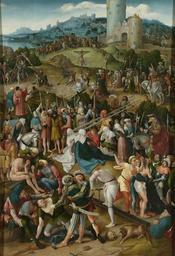 | Keywords: De Calvarieberg Rijksmuseum SK-A-4921.jpeg nl De Calvarieberg tafereel met verschillende scènes uit de Passie van Christus op de voorgrond dobbelen soldaten om het kleed van Christus daarnaast boort een beulsknecht gaten in het kruis rechts wordt Christus ontkleed Iets verder naar achteren zit links Christus op het kruis te wachten op zijn kruisiging in het midden valt Maria in zwijm ondersteund door Johannes rechts Pilatus te paard met een rol papier in de hand Links krijgen de twee moordenaars te drinken voordat zij gekruisigd worden hogepriester Annas te paard geeft een beulsknecht instructies In het midden andere beulsknechten met een ladder en twee kruisen Op de achtergrond de kruisiging In de verte de kruisdraging in een stoet die uit de stadspoort van Jeruzalem komt aangelopen ; Pseudo Jan Wellens de Cock werkzaam ca 1505-1530 Leiden ca 1520 olieverf op paneel drager Height cm 172 5 drager Width cm 119 exhibition history 2009-2013 Langdurig bruikleen Stedelijk Museum de Lakenhal Leiden 2004-None Bruikleen tijdens renovatie RM Stedelijk Museum De Lakenhal Leiden Institution Rijksmuseum wood ; oil object history Acquisition 1996 object type Potential derivatives exist check http //commons wikimedia org/w/index php search Rijksmuseum+SK-A-4921 this search PD-US PD-old-100 Data and photography rights All data and all images made available through the API are either in the public domain or are subject to a CC0 license https //www rijksmuseum nl/en/api/terms-and-conditions-of-use cc-zero place of creation Leiden; Leiden N Beets 'Nog eens 'Jan Wellens de Cock' en de zonen van Cornelis Engelbrechtsz Pieter Cornelisz Kunst Cornelis Cornelisz Kunst Lucas Cornelisz de Kock' Oud Holland 67 1952 p 15-17 N Beets 'Zestiende-eeuwsche kunstenaars 4 Lucas Corneliszoon de Kock De schilderijen van Lucas Cornelis de Kock en van Cornelis Cornelisz Kunst exeat Jan Wellens de Cock' Oud Holland 53 1936 p 71-72 P Wescher 'Um Jan de Cock' Zeitschrift für bildende Kunst 59 1925-1926 p 151-152 M J Friedländer 'Die Brügger Leihausstellung von 1902' Repertorium für Kunstwissenschaft 26 1903 p 161 http //www rijksmuseum nl/collectie/SK-A-4921 De Calvarieberg Q17341384 Uploaded with GWToolset De Calvarieberg Rijksmuseum SK-A-4921 http //www rijksmuseum nl/media/assets/SK-A-4921 Images uploaded by Fæ Images from the Rijksmuseum Early Netherlandish paintings in the Rijksmuseum Amsterdam |